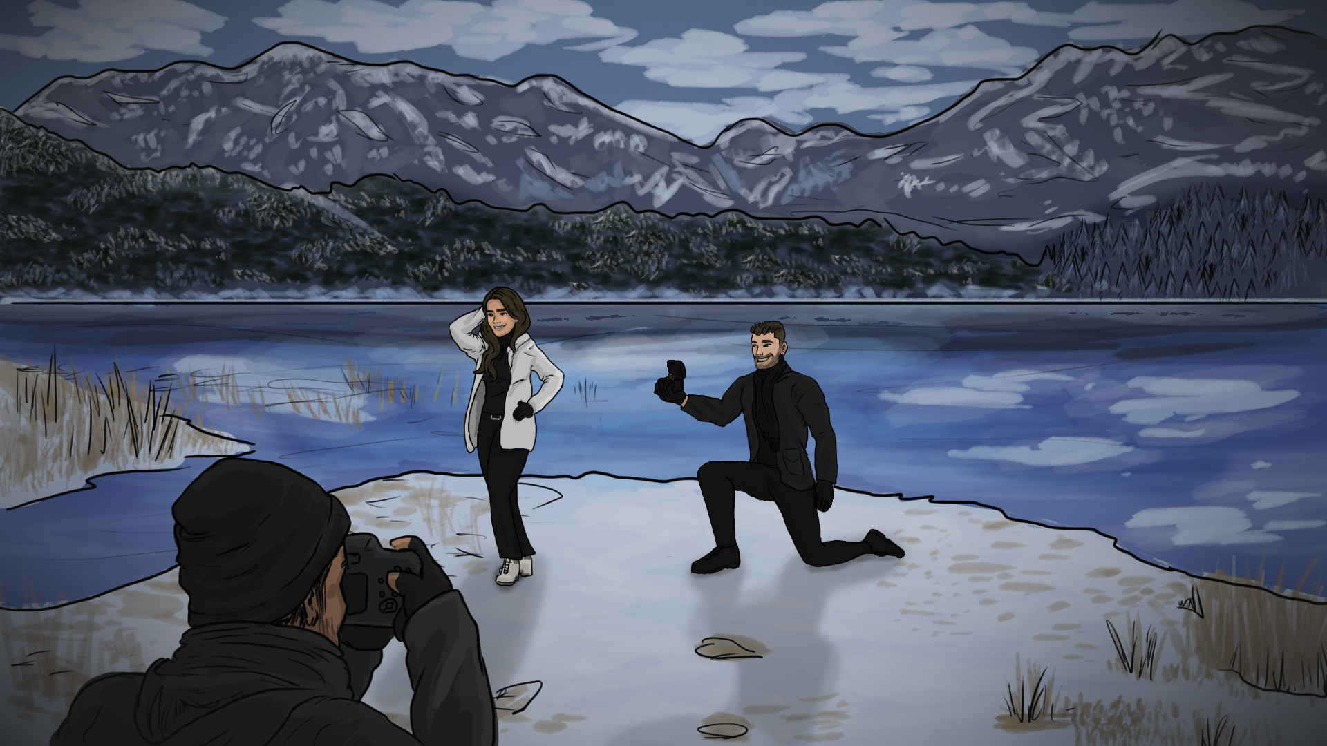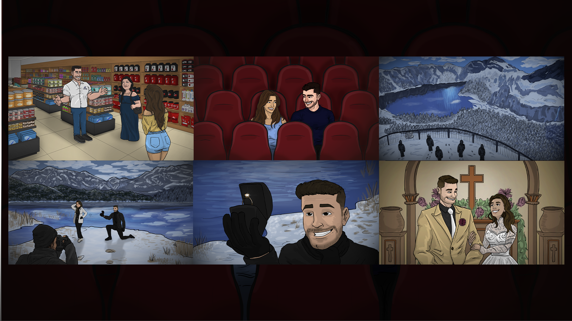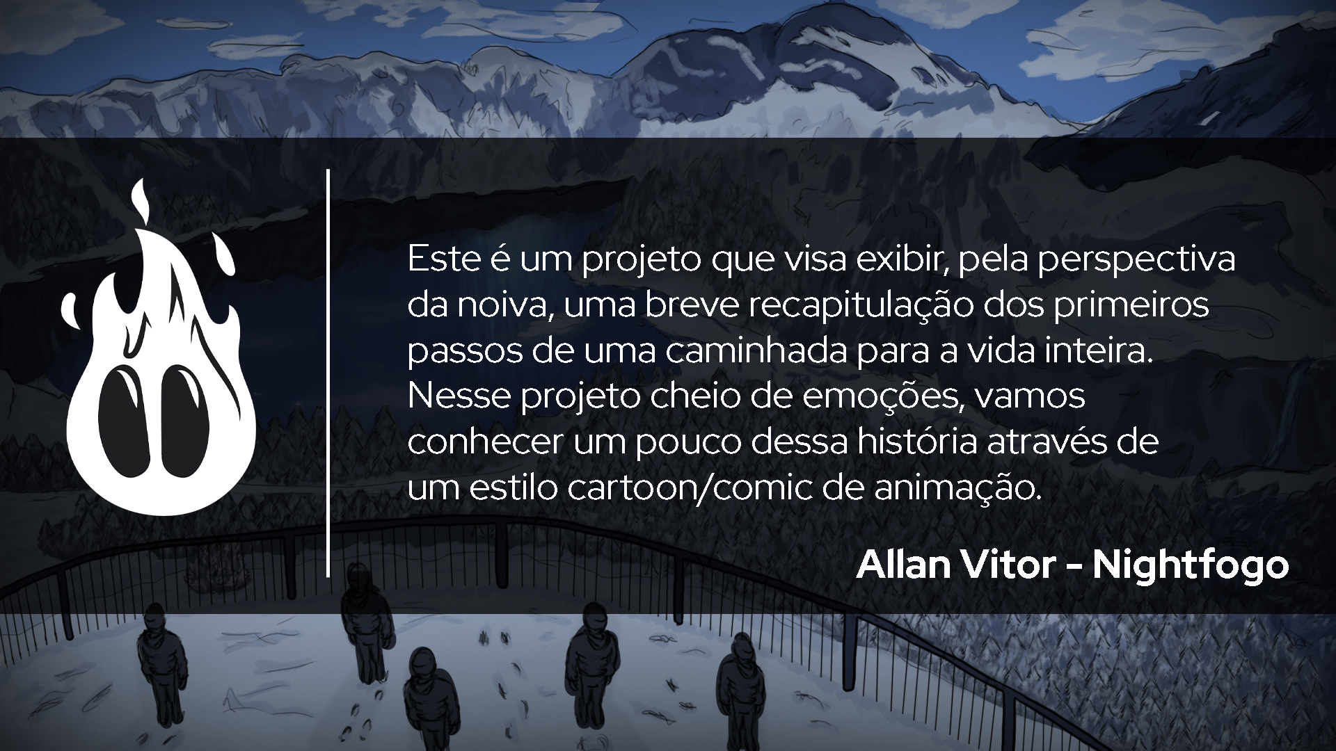 This is a project that aims to showcase, from the bride's perspective, a brief recap of the first steps in a lifelong journey. In this emotion-filled project, we will get to know a bit of this story through a cartoon/comic-style animation.